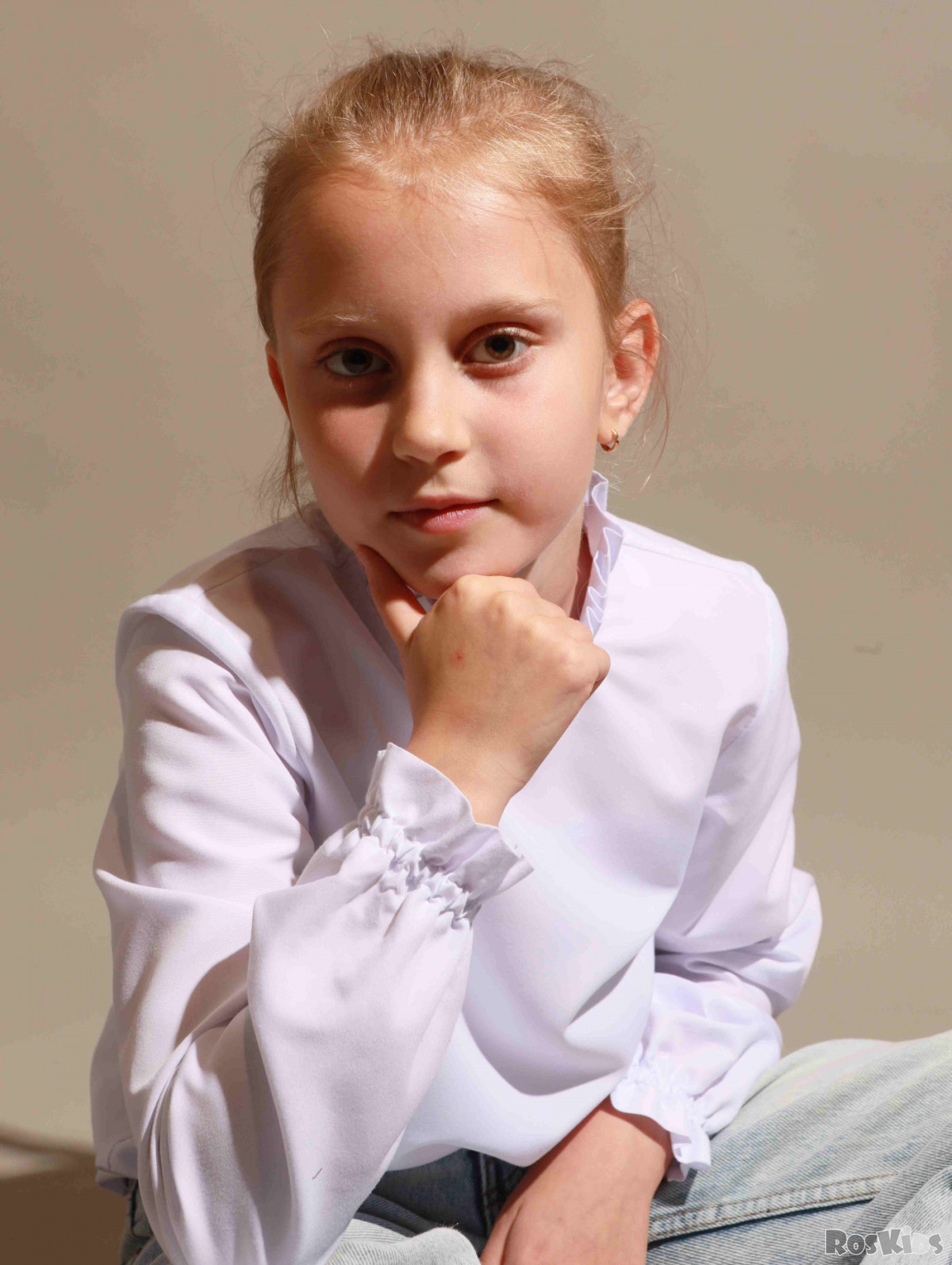 Прошла интенсив в школе моделей с закрытым показом в Роскидс. Занимается спортом!